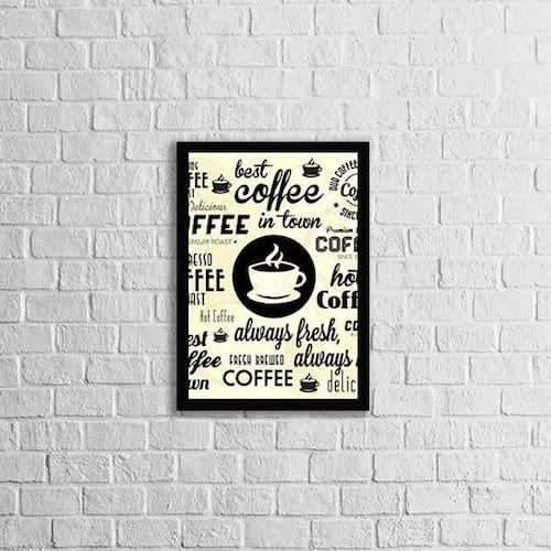 Quadro Café Palavras 24X18Cm Moldura: madeira branca Informações do produto Decoração para quarto, sala, cozinha, escritório, área gourmet e muito mais. Chega de paredes vazias. Medidas - cada peça tem 24x18cm a5 . Material do papel - papel fotográfico brilhante de altíssima resolução Acabamento - todos os quadros são acompanhados de uma película de acetato para proteção da imagem. - moldura em madeira maciça na cor branca e pendurador móvel que pode ser retirado facilmente caso deseje fixar com fita dupla face. - os quadros são embalados de forma segura com plástico bolha com camada dupla de acordo com o tamanho dos quadros. - de 3 meses Meu quadro chegou. Como posso fixá-lo: Você precisa apenas de um martelo e um prego, pois os quadros já vão acompanhados de penduradores. Esta é a forma mais indicada. Caso prefira, você pode utilizar uma fita dupla face neste caso, sugerimos de alta qualidade para evitar que descole e seu quadro caia . Como posso limpar meu quadro: A limpeza é feita como um móvel comum da sua casa. Apenas um pano seco ou espanador são suficientes para tal