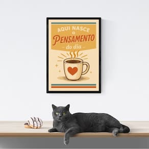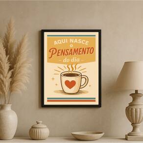 Quadro Café - Primeiro Pensamento do Dia 45x34cm - com vidro - Cor: Moldura preta