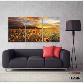 Quadro Campo de Flores Pôr do Sol Girassol Mosaico 120x60 mo