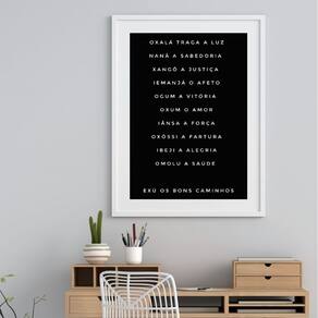 Quadro Candomblé Nomes Orixás - 60x48cm - Moldura: Madeira preta