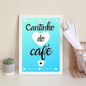 Quadro cantinho do café azul 45x34cm - com vidro Moldura: madeira branca Informações do produto tire todas as suas dúvidas no descritivo abaixo: decoração para quarto, sala, cozinha, escritório, área gourmet e muito mais. Chega de paredes vazias medidas - cada peça tem 45x34cm a3 . Material do papel - papel fotográfico brilhante de altíssima resolução acabamento - todos os quadros são acompanhados de vidro para proteção da imagem. - moldura em madeira maciça na cor preta e pendurador . - os quadros são embalados de forma segura com plástico bolha com camada dupla de acordo com o tamanho dos quadros. Garantia - garantia de 3 meses. Meu quadro chegou. Como posso fixá-lo Você precisa apenas de um martelo e um prego, pois os quadros já vão acompanhados de penduradores. Esta é a forma mais indicada. Como posso limpar meu quadro A limpeza é feita como um móvel comum da sua casa. Apenas um pano seco ou espanador são suficientes para tal