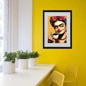 Quadro cantinho do café frida - 60x48cm Moldura: madeira branca Informações do produto tire todas as suas dúvidas no descritivo abaixo: decoração para quarto, sala, cozinha, escritório, área gourmet e muito mais. Chega de paredes vazias medidas - cada peça tem 60x48cm . Material do papel - papel fotográfico brilhante de altíssima resolução acabamento - todos os quadros são acompanhados de vidro para proteção da imagem. - moldura em madeira maciça na cor preta ou branca conforme produto escolhido e pendurador. - paspatur branco com 7cm de largura - os quadros são embalados de forma segura com plástico bolha com camada dupla de acordo com o tamanho dos quadros. Garantia - garantia de 3 meses. Meu quadro chegou. Como posso fixá-lo Você precisa apenas de um martelo e um prego, pois os quadros já vão acompanhados de penduradores. Esta é a forma mais indicada. Como posso limpar meu quadro A limpeza é feita como um móvel comum da sua casa. Apenas um pano seco ou espanador são suficientes para tal