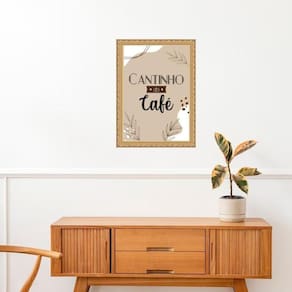 Quadro cantinho do café moldura dourada 33x24cm Acabamento: com acetato Informações do produto tire todas as suas dúvidas no descritivo abaixo: decoração para quarto, sala, cozinha, escritório, área gourmet e muito mais. Chega de paredes vazias medidas - cada peça tem 33x24cm a4 . Material do papel - papel fotográfico brilhante de altíssima resolução acabamento - todos os quadros são acompanhados de vidro ou uma película de acetato para proteção da imagem conforme escolha . - os quadros são embalados de forma segura com plástico bolha com camada dupla de acordo com o tamanho dos quadros. Garantia - garantia de 3 meses. Meu quadro chegou. Como posso fixá-lo Você precisa apenas de um martelo e um prego, pois os quadros já vão acompanhados de penduradores. Esta é a forma mais indicada. Caso prefira, você pode utilizar uma fita dupla face neste caso, sugerimos de alta qualidade para evitar que descole e seu quadro caia . Como posso limpar meu quadro A limpeza é feita como um móvel comum da sua casa. Apenas um pano seco ou espanador são suficientes para tal
