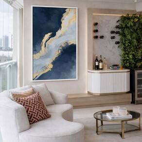 Quadro Canvas Abstrato Golden Drift 60x40cm Mold Preta