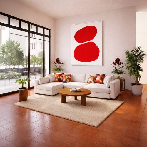 Quadro Canvas Abstrato Ponto Vermelho 70x50cm Mold Branca