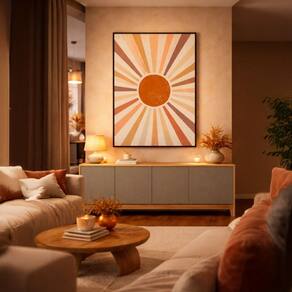 Quadro Canvas Abstrato Sol Boho 90x60cm Mold Preta