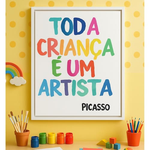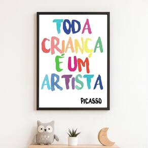 Quadro Canvas Criança Artista Picasso 70x50cm Mold Preta