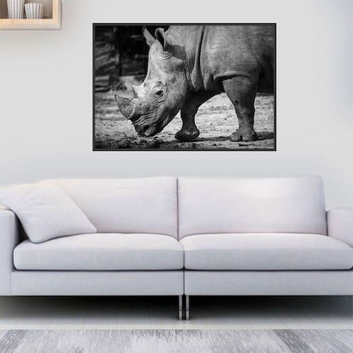 Quadro Canvas Decorativo Para Sala Rinoceronte P&B 50x70Nossa impressão em HD a base de solvente garante que as cores sejam brilhantes e não desbotem com o tempo. Impressão fotográfica de alta qualidade em tecido Canvas de algodão, as laterais da tela são recobertas com a própria impressão, sem a necessidade de moldura. A armação em madeira de pinus, vazada, mede 2cm de profundidade.DIMENSÇÕESAltura: 50cmLargura: 70cmProfundidade: 2cmCARACTERÍSTICA DO PRODUTOTELA:- Impressa em tecido Canvas 100% algodão, esticado e grampeado em armação de madeira.- A qualidade do tecido canvas é o mesmo utilizado em obras de arte com impressão de alta resolução a base de solvente.LIMPEZA:- Utilizar espanador ou pano seco e macio. Poderá usar pano ligeiramente úmido, porém sem conter álcool ou produtos químicos.INSTALAÇÃO:- Pendure com prego ou bucha com parafuso.EVITAR- Não deixar exposto a umidade, raios de sol, para garantir maior durabilidade.ATENÇÃOPODE OCORRER UMA LEVE DIFERENÇA NA TONALIDADE DAS CORES IMPRESSAS NO PRODUTO, EM COMPARAÇÃO, AS QUE SÃO VISTAS NA TELA DOS MONITORES OU SMARTPHONES. Marca: LUGGUI ART. FOTOG
