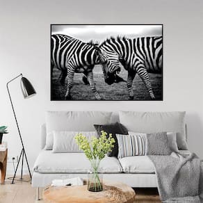 Quadro Canvas Decorativo Para Sala Zebras 1,00x1,30Nossa impressão em HD a base de solvente garante que as cores sejam brilhantes e não desbotem com o tempo. Impressão fotográfica de alta qualidade em tecido Canvas de algodão, as laterais da tela são recobertas com a própria impressão, sem a necessidade de moldura. A armação em madeira de pinus, vazada, mede 2cm de profundidade.DIMENSÇÕESAltura: 100cmLargura: 130cmProfundidade: 2cmCARACTERÍSTICA DO PRODUTOTELA:- Impressa em tecido Canvas 100% algodão, esticado e grampeado em armação de madeira.- A qualidade do tecido canvas é o mesmo utilizado em obras de arte com impressão de alta resolução a base de solvente.LIMPEZA:- Utilizar espanador ou pano seco e macio. Poderá usar pano ligeiramente úmido, porém sem conter álcool ou produtos químicos.INSTALAÇÃO:- Pendure com prego ou bucha com parafuso.EVITAR- Não deixar exposto a umidade, raios de sol, para garantir maior durabilidade.ATENÇÃOPODE OCORRER UMA LEVE DIFERENÇA NA TONALIDADE DAS CORES IMPRESSAS NO PRODUTO, EM COMPARAÇÃO, AS QUE SÃO VISTAS NA TELA DOS MONITORES OU SMARTPHONES. Marca: LUGGUI ART. FOTOG