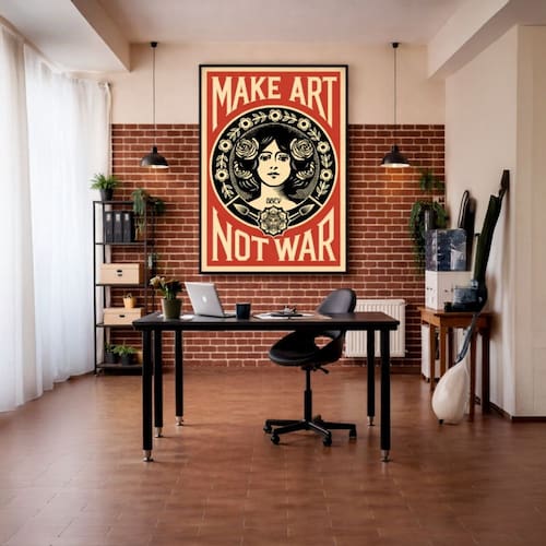 Quadro Canvas Fairey Make Art Not War 40x30cm Mold Preta