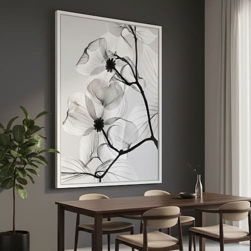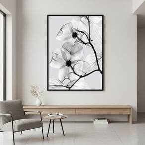 Quadro Canvas Flores PeB Transparentes 40x30cm Mold Preta