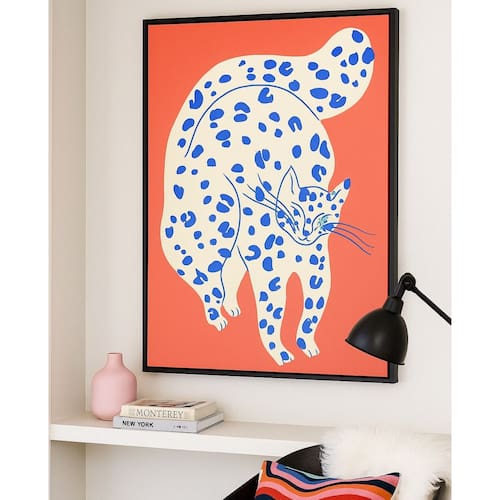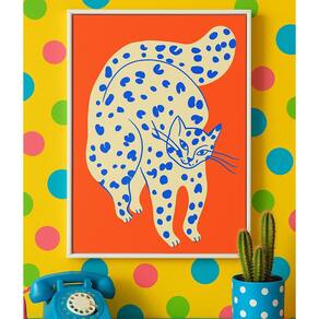 Quadro Canvas Gato Pop Laranja 60x40cm Mold Preta