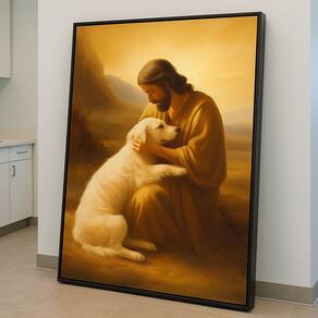 Quadro Canvas Jesus Com Cachorro 60x40cm Mold Preta