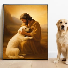 Quadro Canvas Jesus Com Cachorro 90x60cm Mold Branca