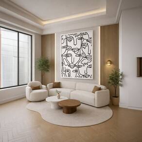 Quadro Canvas Line Art Rostos P&B 70x50cm Mold Branca