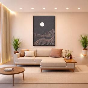 Quadro Canvas Lua e Colinas Minimalista 70x50cm Mold Branca