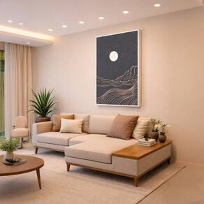 Quadro Canvas Lua e Colinas Minimalista 90x60cm Mold Preta