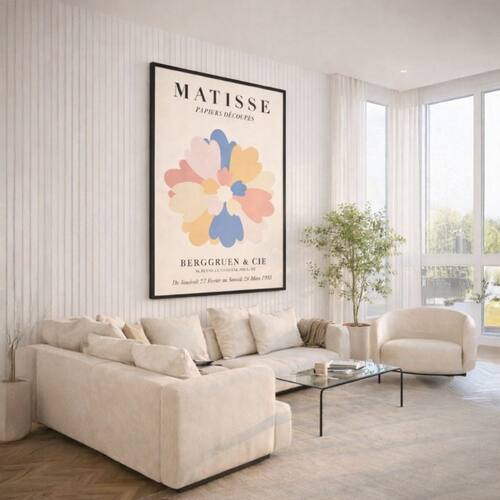 Quadro Canvas Matisse Papel Découp Flor 40x30cm Mold Branca
