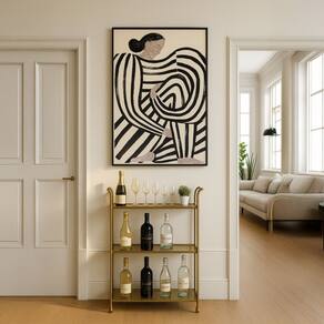 Quadro Canvas Mulher de Pijama Preto 90x60cm Mold Branca