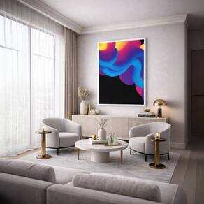 Quadro Canvas Ondas Neon 60x40cm Mold Preta