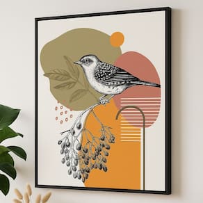 Quadro Canvas Passarinho Abstrato 40x30cm Mold Branca