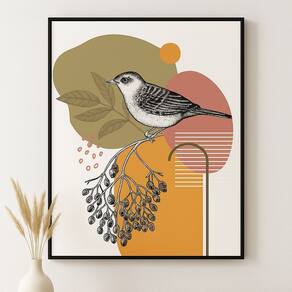 Quadro Canvas Passarinho Abstrato 60x40cm Mold Branca