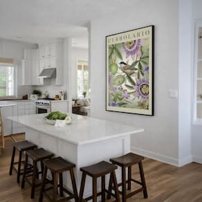 Quadro Canvas Pássaro Flores Maracujá 40x30cm Mold Branca