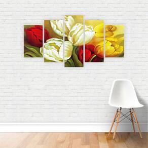 Quadro Canvas Pintura Rosas E Flores Coloridas 155X80Cm Tamanho: Conjunto de 5 quadros conjugados com imagem em continuidade com medida total de 1,55mx0,80m sendo: 2 quadros de 30x50cm; 2 quadros de 30x65cm; 1 quadros de 30x80cm; Acompanha manual com dicas de instalação. Canvas: Sua experiência com esse material será inesquecível. Você pode achar que não conhece tecido canvas, mas com certeza já deve ter visto um quadro em tela, como uma pintura ou em um museu, pois o mesmo é utilizado para as mais belas pinturas. O tecido canvas é um material 100% algodão com preparação especial, tratamento anti bacteriano, antimofo e verniz semibrilho, apropriada para a impressão. Chassi madeira : É a estrutura de madeira eucalipto beneficiado de reflorestamento onde o tecido impresso é esticado cuidadosamente. A melhor estrutura para quadros e telas com madeira de 3x2,3cm de espessura, chanfrada para não marcar a parte frontal de sua tela, é grampeada pelo verso dando um acabamento especial, onde suas imagens aparecem até mesmo na volta da madeira Assim seu quadro chega pronto para pendurar e não necessita de moldura Embalagem: Feita cuidadosamente envolvendo as peças com filme stretch pvc, para que diminua quase a zero as chances de marcar de alguma maneira seu quadro no transporte. O mesmo é colocado em uma caixa feita especialmente para o seu tamanho de quadro, assim seu quadro fica bem mais firme dentro da embalagem. Marca: Não Informado