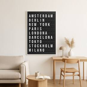 Quadro Canvas Placa de Aeroporto 70x50cm Mold Preta