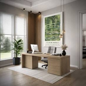 Quadro Canvas Ponte Lagoa Lírios Monet 90x60cm Mold Branca