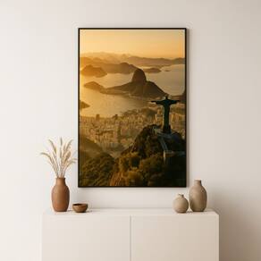Quadro Canvas Por do Sol Rio de Janeiro 70x50cm Mold Preta