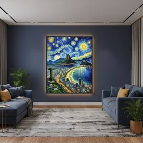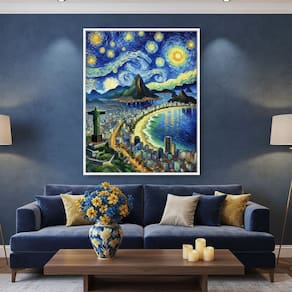 Quadro Canvas Rio de Janeiro Van Gogh 90x60cm Mold Preta