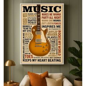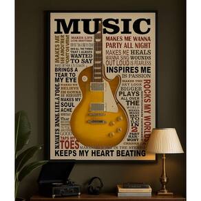 Quadro Canvas Rock Guitarra Music 70x50cm Mold Branca