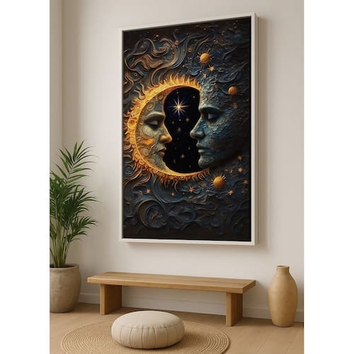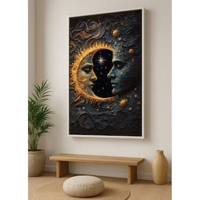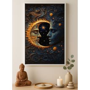 Quadro Canvas Sol Lua Harmonia Eclipse 90x60cm Mold Branca