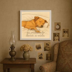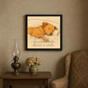 Quadro Cão Caramelo A Mimir - 33x33cm - com vidro - Cor: Moldura Preta