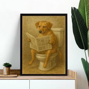 Quadro Cão Caramelo No Banheiro Lendo Jornal 33x24cm - Cor: Moldura branca