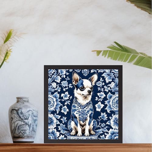 Quadro cão chihuahua estilo azulejo português - 33x33cm Cor: moldura preta Informações do produto tire todas as suas dúvidas no descritivo abaixo: decoração para quarto, sala, cozinha, escritório, área gourmet e muito mais. Chega de paredes vazias medidas - cada peça tem 33x33cm. Material do papel - papel fotográfico brilhante de altíssima resolução acabamento - todos os quadros são acompanhados de uma película de acetato para proteção da imagem. - os quadros são embalados de forma segura com plástico bolha com camada dupla de acordo com o tamanho dos quadros. - de 3 meses. Meu quadro chegou. Como posso fixá-lo Você precisa apenas de um martelo e um prego, pois os quadros já vão acompanhados de penduradores. Esta é a forma mais indicada. Caso prefira, você pode utilizar uma fita dupla face neste caso, sugerimos de alta qualidade para evitar que descole e seu quadro caia . Como posso limpar meu quadro A limpeza é feita como um móvel comum da sua casa. Apenas um pano seco ou espanador são suficientes para tal Marca: Não Informado