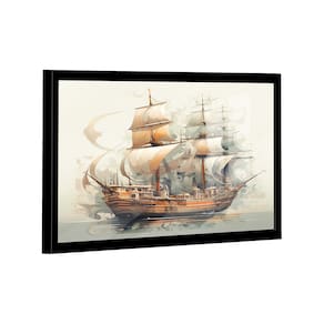 Quadro Caravela Aquarela -- BR ARTES Moldura Branca e Vidro - Pequeno 60x40 -