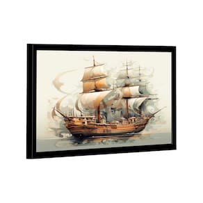 Quadro Caravela Aquarela -- BR ARTES Moldura Preta - Gigante 180x105 -