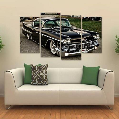 Quadro Carro Cadillac Deville Coupe 1954 Em Tecido 4 Peças 1