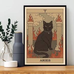 Quadro carta tarot gato signo áries 24x18cm Moldura: madeira preta Informações do produto tire todas as suas dúvidas no descritivo abaixo: decoração para quarto, sala, cozinha, escritório, área gourmet e muito mais. Chega de paredes vazias medidas - cada peça tem 24x18cm a5 . Material do papel - papel fotográfico brilhante de altíssima resolução acabamento - todos os quadros são acompanhados de uma película de acetato para proteção da imagem. - os quadros são embalados de forma segura com plástico bolha com camada dupla de acordo com o tamanho dos quadros. Garantia - garantia de 3 meses. Meu quadro chegou. Como posso fixá-lo Você precisa apenas de um martelo e um prego, pois os quadros já vão acompanhados de penduradores. Esta é a forma mais indicada. Caso prefira, você pode utilizar uma fita dupla face neste caso, sugerimos de alta qualidade para evitar que descole e seu quadro caia . Como posso limpar meu quadro A limpeza é feita como um móvel comum da sua casa. Apenas um pano seco ou espanador são suficientes para tal