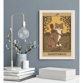 Quadro carta tarot gato signo sagitário 45x34cm Moldura: madeira preta Informações do produto tire todas as suas dúvidas no descritivo abaixo: decoração para quarto, sala, cozinha, escritório, área gourmet e muito mais. Chega de paredes vazias. Medidas - cada peça tem 45x34cm a3 . Material do papel - papel fotográfico brilhante de altíssima resolução acabamento - todos os quadros são acompanhados de uma película de acetato para proteção da imagem. - os quadros são embalados de forma segura com plástico bolha com camada dupla de acordo com o tamanho dos quadros. - de 3 meses. Meu quadro chegou. Como posso fixá-lo Você precisa apenas de um martelo e um prego, pois os quadros já vão acompanhados de penduradores. Esta é a forma mais indicada. Caso prefira, você pode utilizar uma fita dupla face neste caso, sugerimos de alta qualidade para evitar que descole e seu quadro caia . Como posso limpar meu quadro A limpeza é feita como um móvel comum da sua casa. Apenas um pano seco ou espanador são suficientes para tal Marca: Não Informado