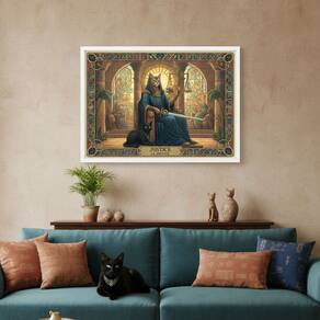Quadro Carta Tarot Gatos A Justiça 70x50cm Mold Preta