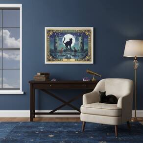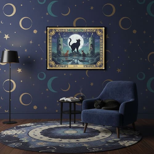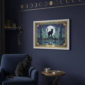 Quadro Carta Tarot Gatos A Lua 70x50cm Mold Branca