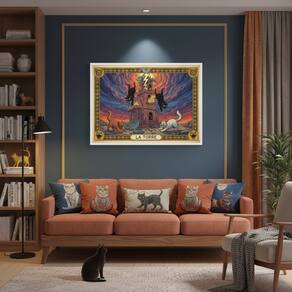 Quadro Carta Tarot Gatos A Torre 70x50cm Mold Branca