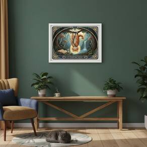 Quadro Carta Tarot Gatos O Enforcado 70x50cm Mold Branca