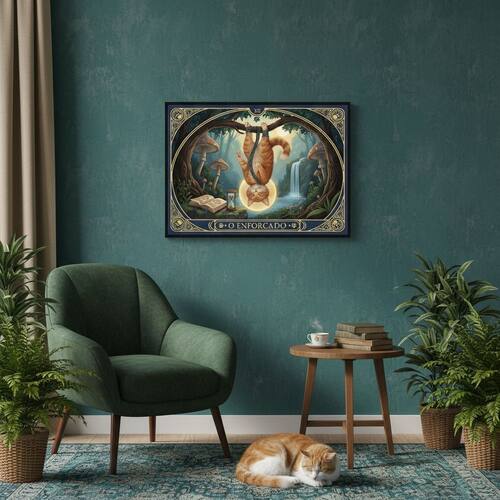Quadro Carta Tarot Gatos O Enforcado 70x50cm Mold Preta