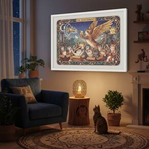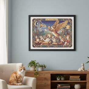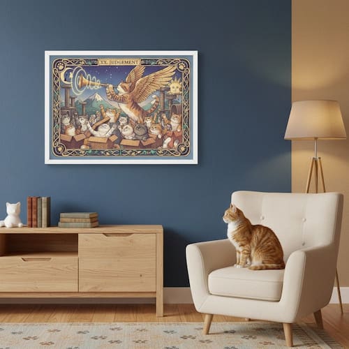 Quadro Carta Tarot Gatos O Julgamento 70x50cm Mold Preta