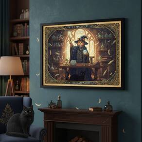 Quadro Carta Tarot Gatos O Mago 70x50cm Mold Branca