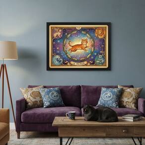 Quadro Carta Tarot Gatos O Mundo 70x50cm Mold Preta